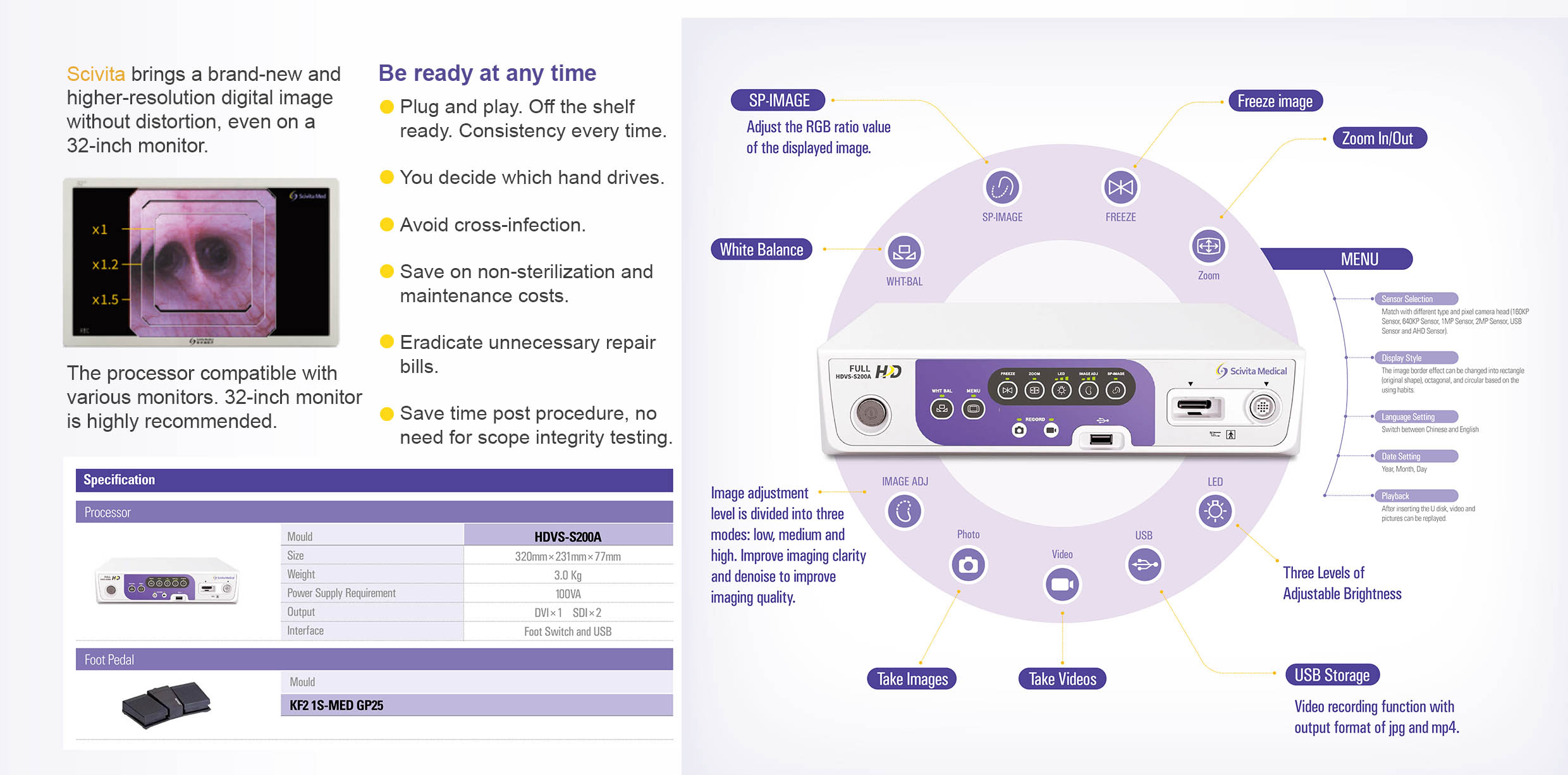 LED light is placed at the distal end ofthe endoscope | |