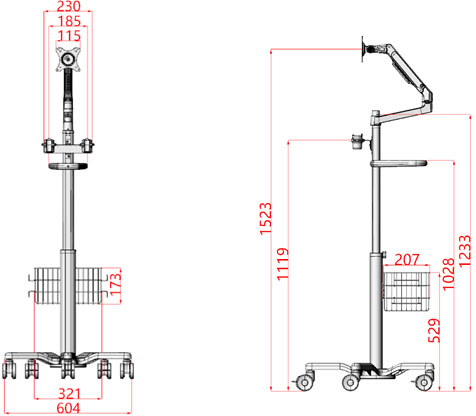 | 1 | Arm | Aluminum alloy, silver color, load capacity of 3-6 kg, lift range 285 mm |